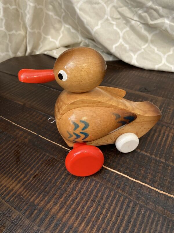 Title (ebay affiliate link): Vintage Wooden Duck Duckling Pull Toy Painted Mid-20th Century Germany 7"