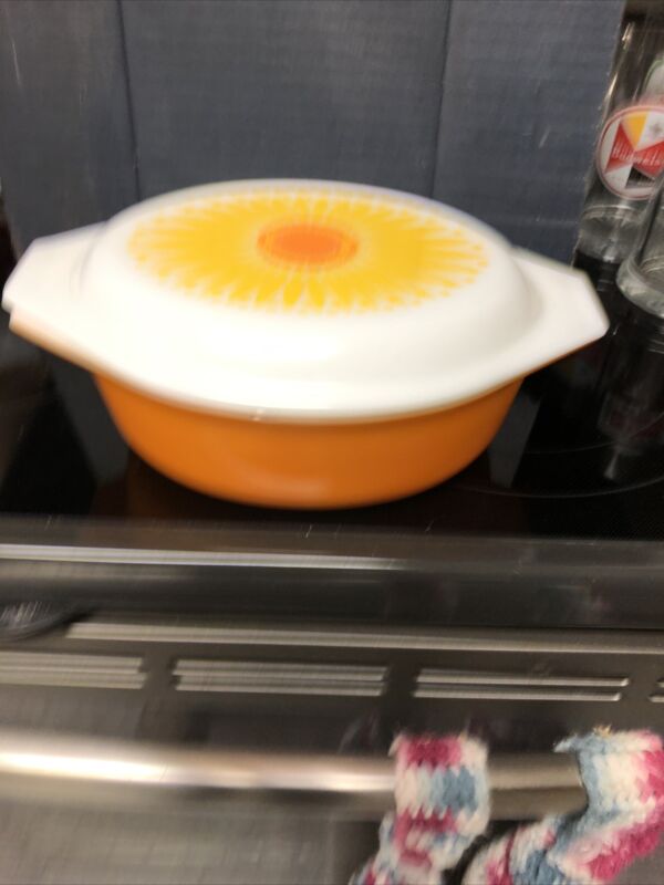 Vintage Pyrex Sunflower Daisy Orange Yellow Casserole 1 1/2 quart 043