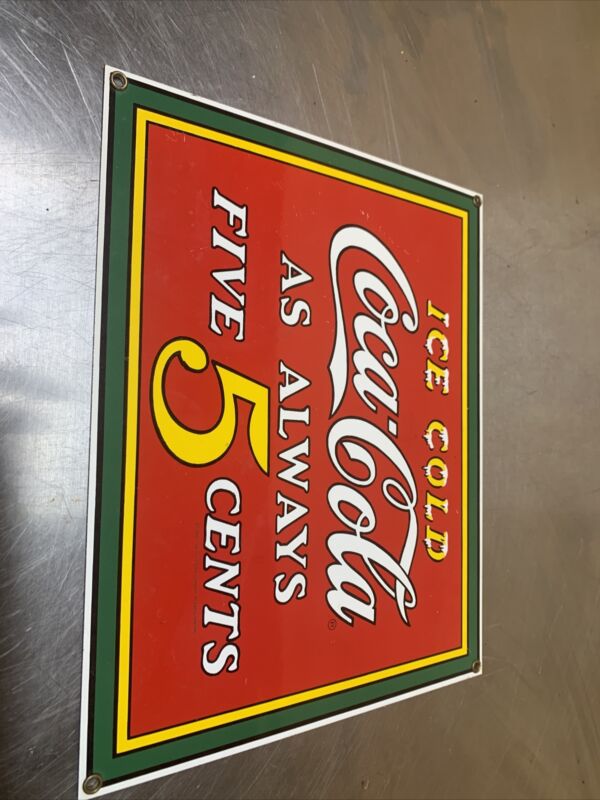 Title (ebay affiliate link): 1990 Coca-Cola Porcelain Enamel Metal Sign-"Ice Cold As Always 5 Cents"