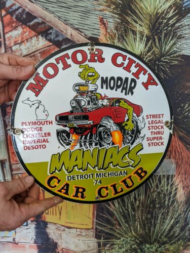 OLD VINTAGE 1974 MOPAR DODGE PLYMOUTH CHRYSLER PORCELAIN ENAMEL MOTOR CITY SIGN