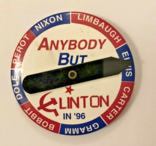 Title (ebay affiliate link): Vintage Campaign Button, "Anybody But Clinton in 96"