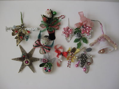 Title (ebay affiliate link): 11 Vintage X-Mas Mercury Glass Flower Ornaments Ties