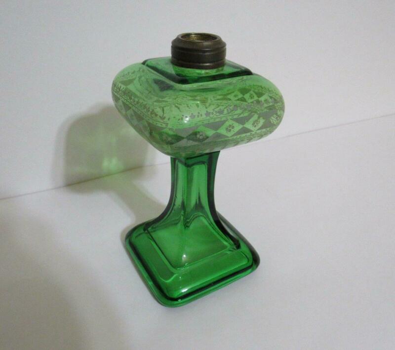 Vintage Antique Green Glass Oil Lamp Parlor Table Light Base