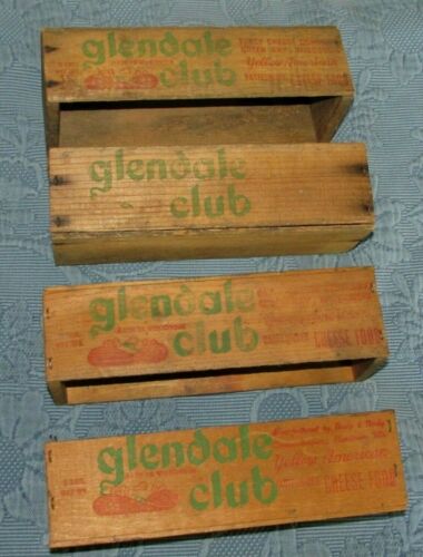 Title (ebay affiliate link): 4 Antique Wooden Glendale Club Wisconsin Cheese Boxes, Pauly & Pauly