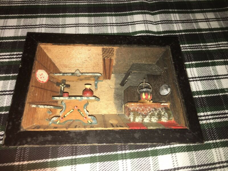 Title (ebay affiliate link): Vintage Made in Italy Diorama 3D Shadow Box Kitchen Scene Wood Carved Vintage