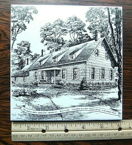 VTG MADAM BRETT HOMESTEAD BEACON NY Signed GOULD Ceramic Tile/WALL Plaque 6" Sq