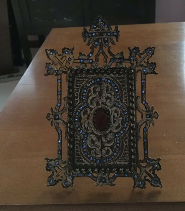 Unique Ornate Vintage Standing Easel Metal Picture Frame
