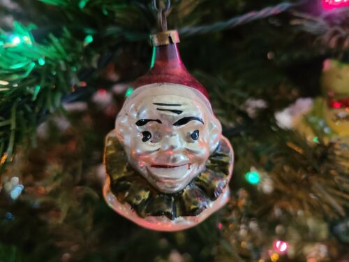 Title (ebay affiliate link): Vintage Antique Christmas Clown Mercury Glass Ornament with Ruffled Collar