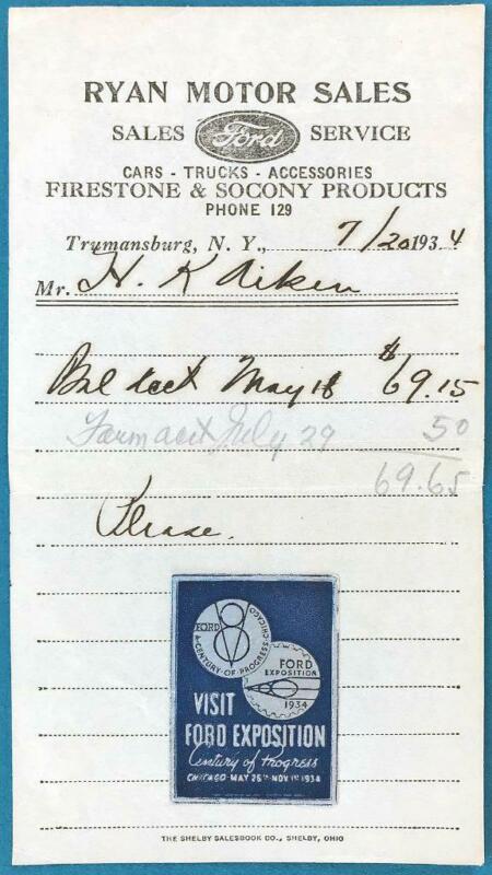 Title (ebay affiliate link): 1934 Ford Dealer SALES RECEIPT w/ CHICAGO FORD EXPO foil sticker