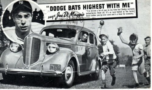 Title (ebay affiliate link): 1938 Joe DiMaggio: "DODGE STREAMLINER Bats Highest For Me" Ad Postcard