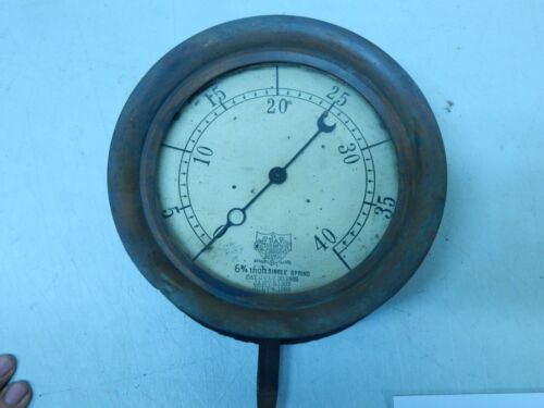 Title (ebay affiliate link): Antique 8 1/2" Brass & Cast Steam Gauge Star Brass 6 3/4" Single Pat July 1889