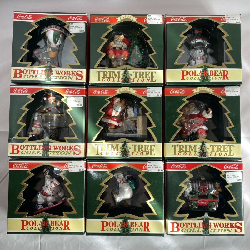 Title (ebay affiliate link): Set Of 9 1995 COCA-COLA Bottling Works Collection Christmas Ornaments