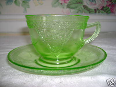 Title (ebay affiliate link): CUP & SAUCER GREEN DEPRESSION GLASS LOVEBIRD GEORGIAN