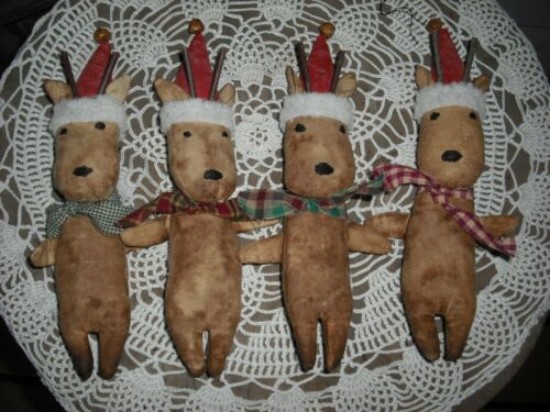 Primitive Set of 4 Reindeer Ornies Bowl Fillers Christmas Ornaments Decoration