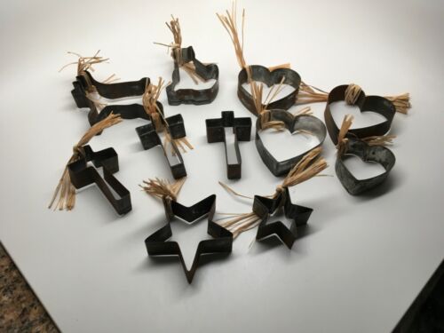 Title (ebay affiliate link): VTG LOT (11) PRIMITIVE RUSTED TIN/METAL COOKIE CUTTER ORNAMENTS-ASSORTED DESIGN