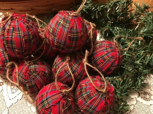 Title (ebay affiliate link): 10 Primitive RED TARTAN PLAID Fabric RAG BALLS Christmas Ornaments Farmhouse A8