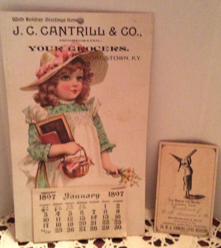 ANTIQUE 1897 J.C.Cantrill & Co. Grocers Georgetown ,Ky. Plus Adv. Card