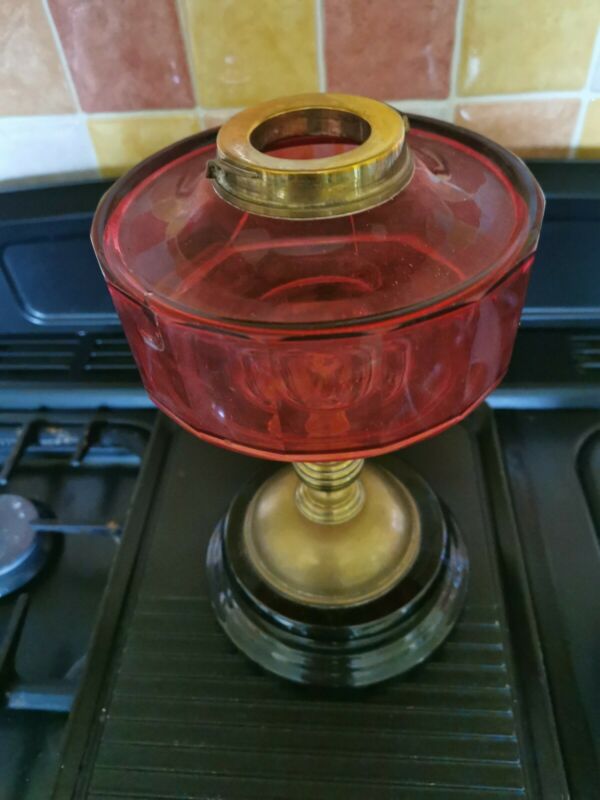 Title (ebay affiliate link): Young''s Victorian Brass Oil Lamp Base with Cranberry Glass Font - Some Damage
