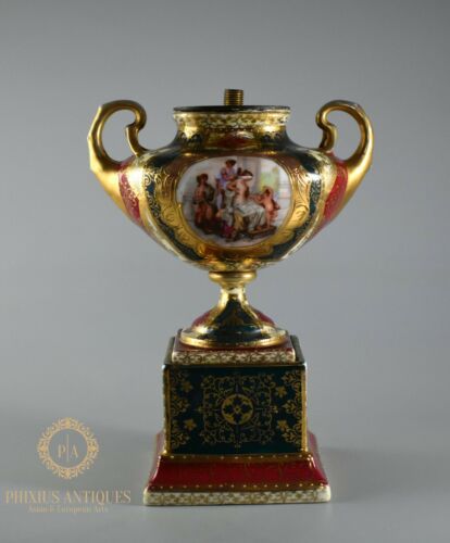 Title (ebay affiliate link): ANTIQUE SMALL VIENNA STYLE TWIN HANDLE VASE CONVERTED TABLE LAMP
