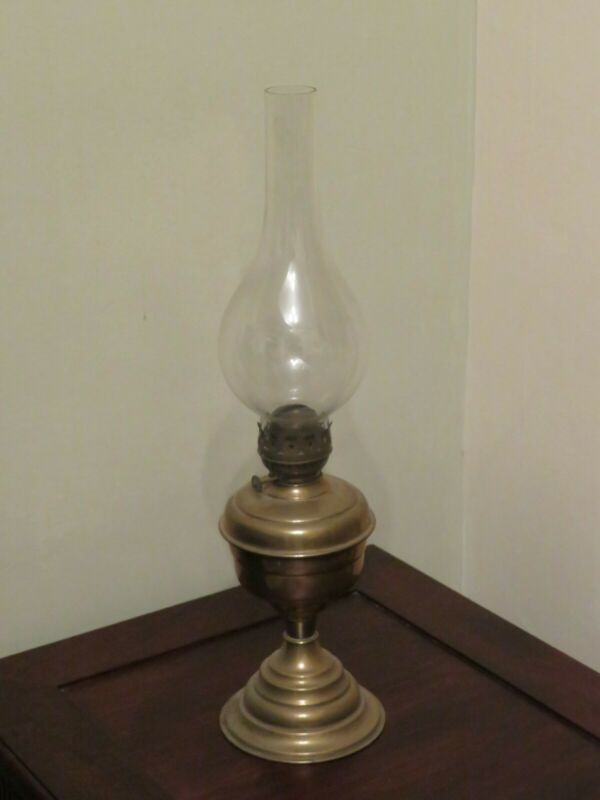 Title (ebay affiliate link): Vintage BRASS Oil Lamp with Glass Chimney & Single Wick Burner VGC