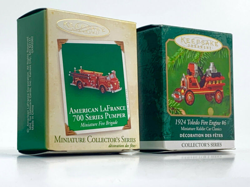 Hallmark Miniature Ornaments Lot Of 2 Fire Engine Themed Both Mint Condition