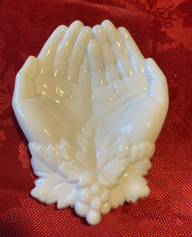 Title (ebay affiliate link): Vintage Westmoreland Milk Glass Open Hands Trinket Dish Grapes White Soap Dish