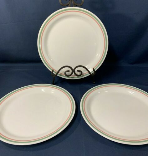 Title (ebay affiliate link): Vintage Corelle HEATHER Set of 3 Dinner Plates 10-1/4" Green Pink Rim Band