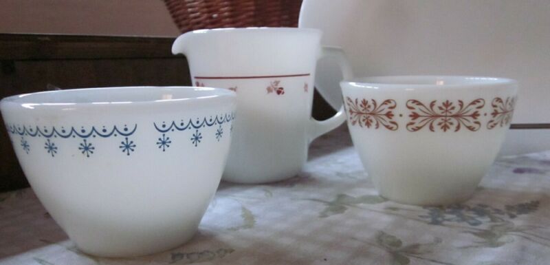 Vintage Corning Pyrex LOT Blue Garland Snowflake Sugar & 2 HTF VTG Patterns LOOK