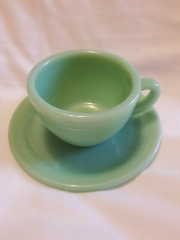 Title (ebay affiliate link): VINTAGE FIRE KING MID 1940s JADEITE RESTAURANT WARE CUP & SAUCER SET MILK GLASS