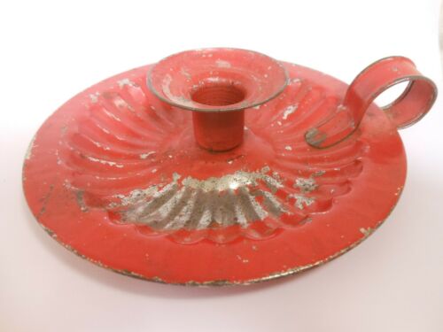 Title (ebay affiliate link): Antique Red Painted Tin, Tole Chamber Candlestick