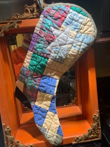 Title (ebay affiliate link): Antique VINTAGE FARM HOUSE CUTTER QUILT STOCKING handmade CHRISTMAS TEXAS BOOT
