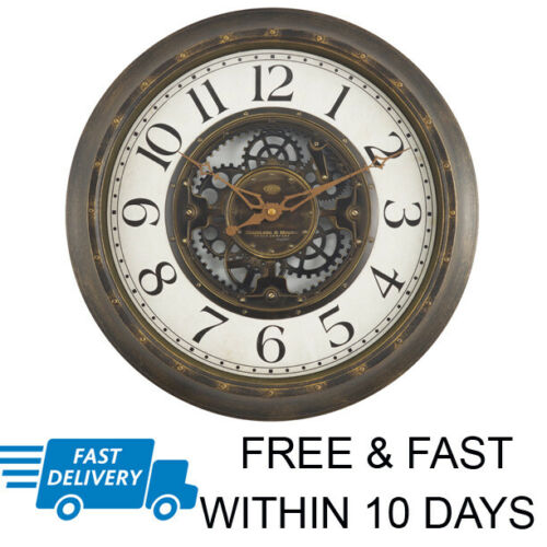 15.5" Bronze Finish Wall Clock Analog Lightweight Plastic Frame Aged Large Gear