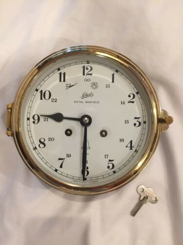 SCHATZ SHIP"S CLOCK W/KEY : CLOCK NEEDS REPAIR