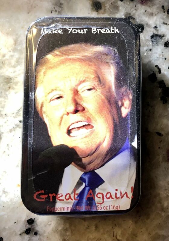 Title (ebay affiliate link): Donald Trump Make Your Breath Great Again Sugar Free Mints Collectible Tin