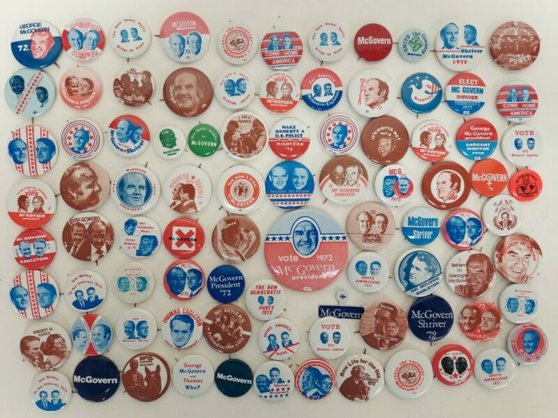 Title (ebay affiliate link): Huge Lot of 89 George McGovern 1972 Presidential Campaign Pinback Buttons