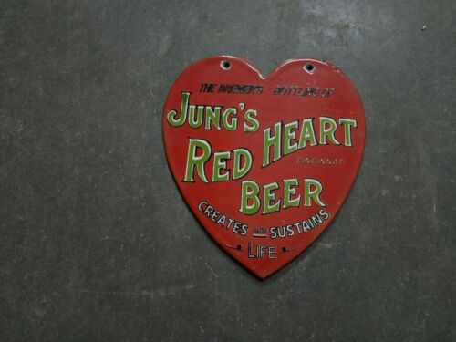 Title (ebay affiliate link): Porcelain Jung''s Red Heart Beer Enamel Sign Size 6" x 5.5" Inches