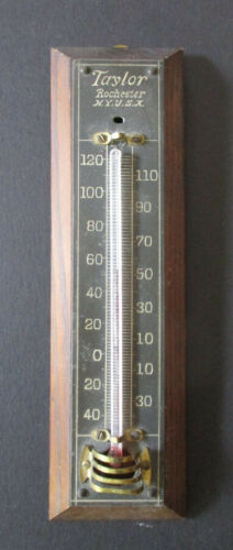 Title (ebay affiliate link): Vintage Mission Oak & Brass Taylor Wall Thermometer Works!