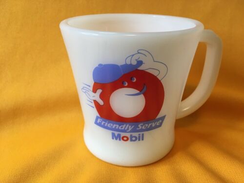 Title (ebay affiliate link): Old Friendly Serve Mascot Mobil Oil Gas Fire King Glass Advertising Coffee Mug