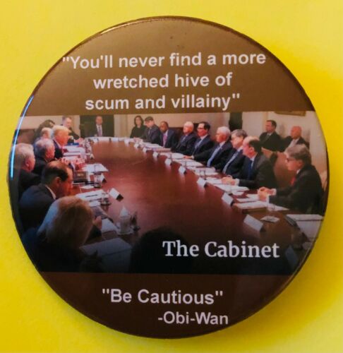 Title (ebay affiliate link): 2 1/4" Anti-Trump Cabinet "Scum and Villany" Political Pinback Button
