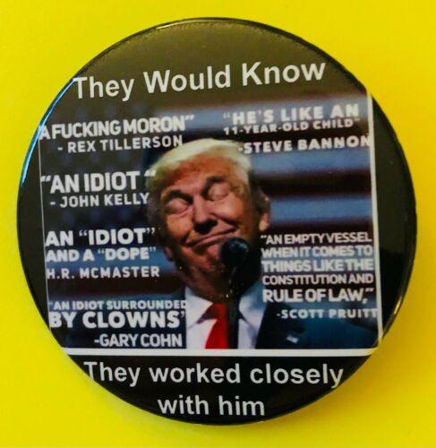 Title (ebay affiliate link): 2 1/4" Anti-Trump "They Would Know...They Worked Closely With Him" Political Pin