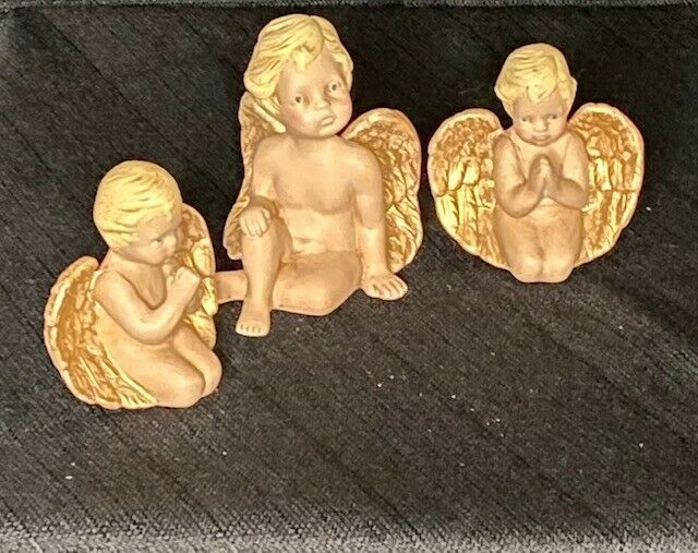 3-Scioto Cherub figurine lot, Christmas, signed painted, 3"