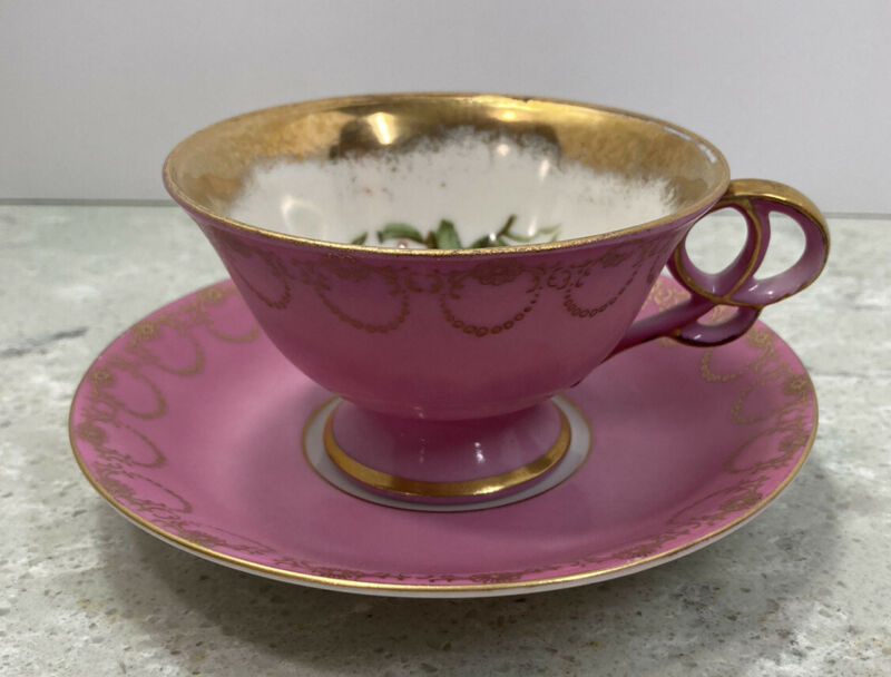 Vintage Bone China Tea Cup & Saucer Set Pink Gold Fruit Pattern