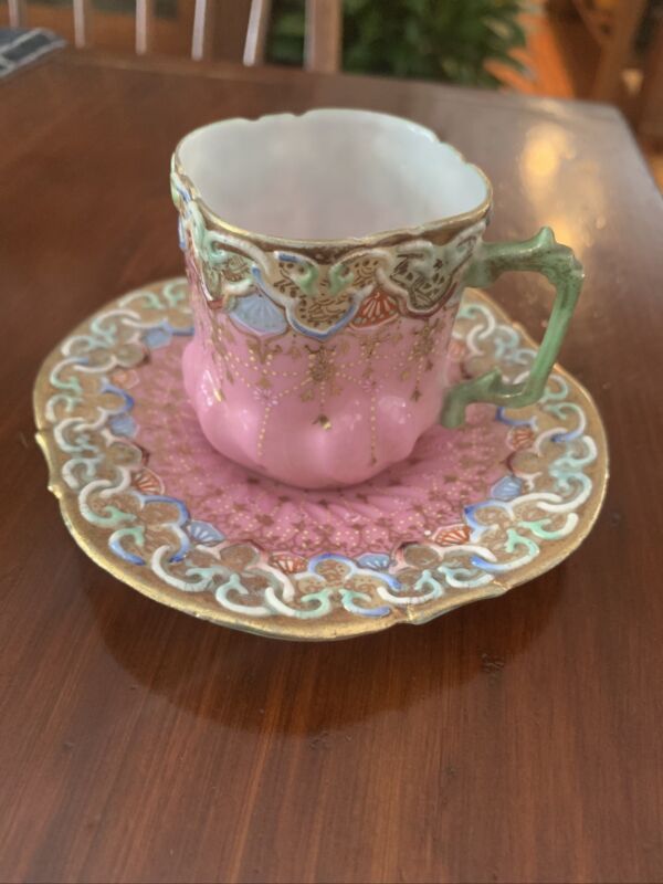 Antique A.A. Vantine And Co Marked Demitasse Cup And Saucer Beautiful Pastels