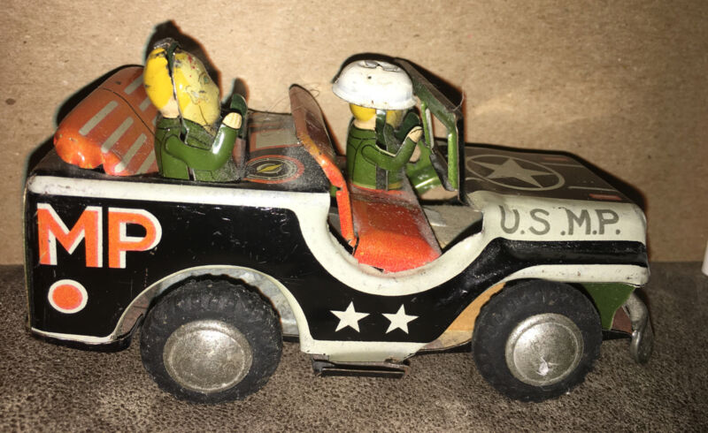 Title (ebay affiliate link): Vintage Japan, Tin Litho Friction Military Car , U.S. M.P.