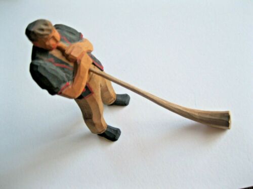Title (ebay affiliate link): Vintage Hand Carved Wood Swiss Folk Art Man Shepherd Alpine Alphorn With Horn