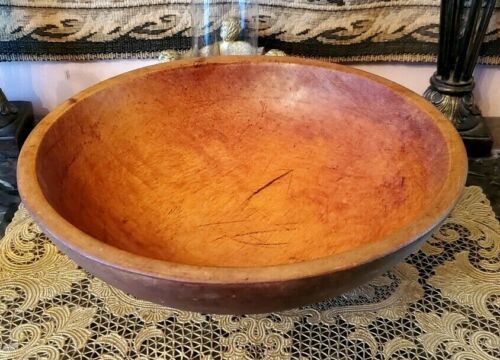 Title (ebay affiliate link): Vintage Munising Primitive Solid Wooden Dough Bowl Large Round Oblong 13"