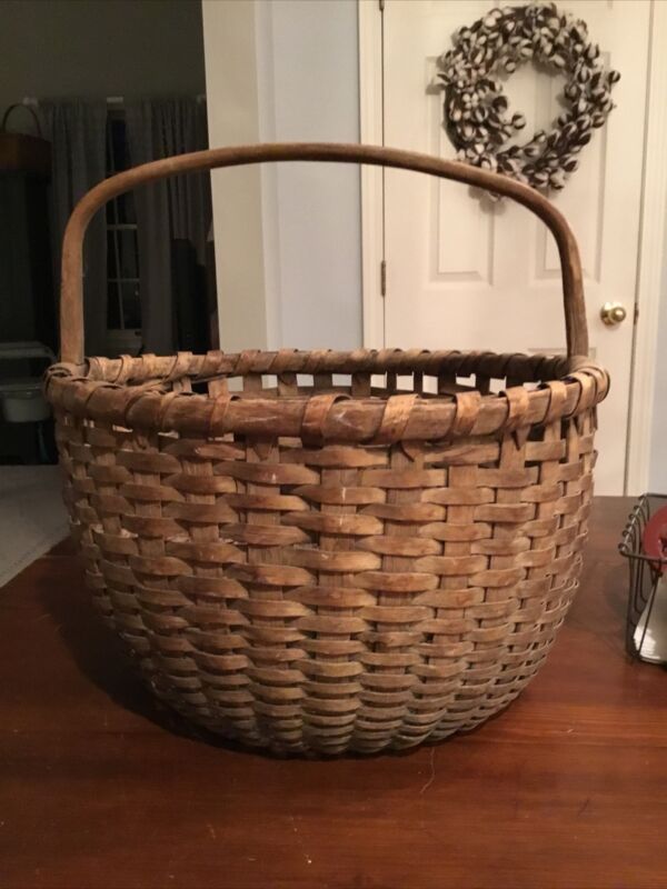 Title (ebay affiliate link): Antique American Primitive Round Split Oak Wood Gathering Basket w/ Handle AAFA