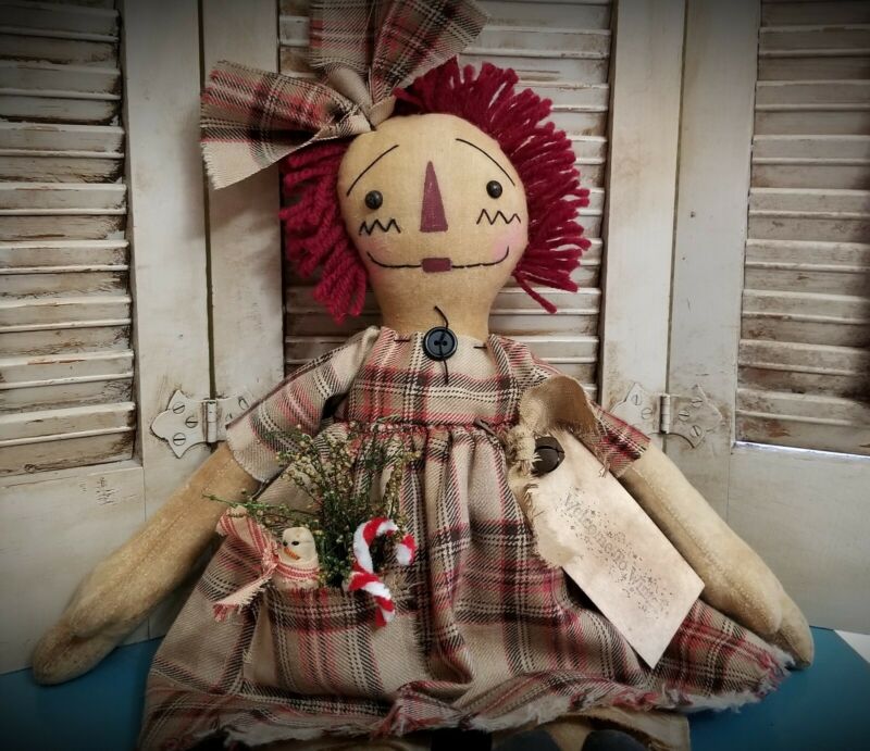 Title (ebay affiliate link): Primitive Raggedy Ann Doll w/ Snowman & Candy Canes ~ Annie ~ Winter~