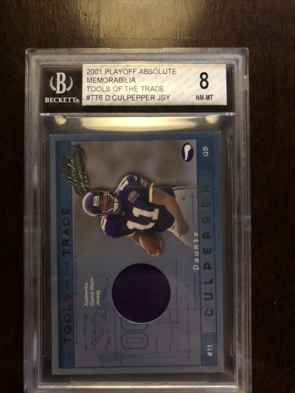 Title (ebay affiliate link): daunte culpepper 2001 Playoff Game Worn Tools Of Trade BGS 8 /300 Invest Graded