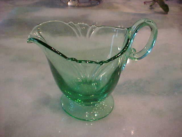 Title (ebay affiliate link): HEISEY GREEN GLASS EMPRESS MOONGLEAM INDIVIDUAL CREAMER CIRCA 1930''S